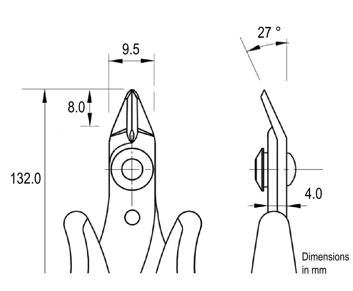 Tek-Me cutters - Micro size head, flush. OAL: 132mm - 5.2". ESD safe