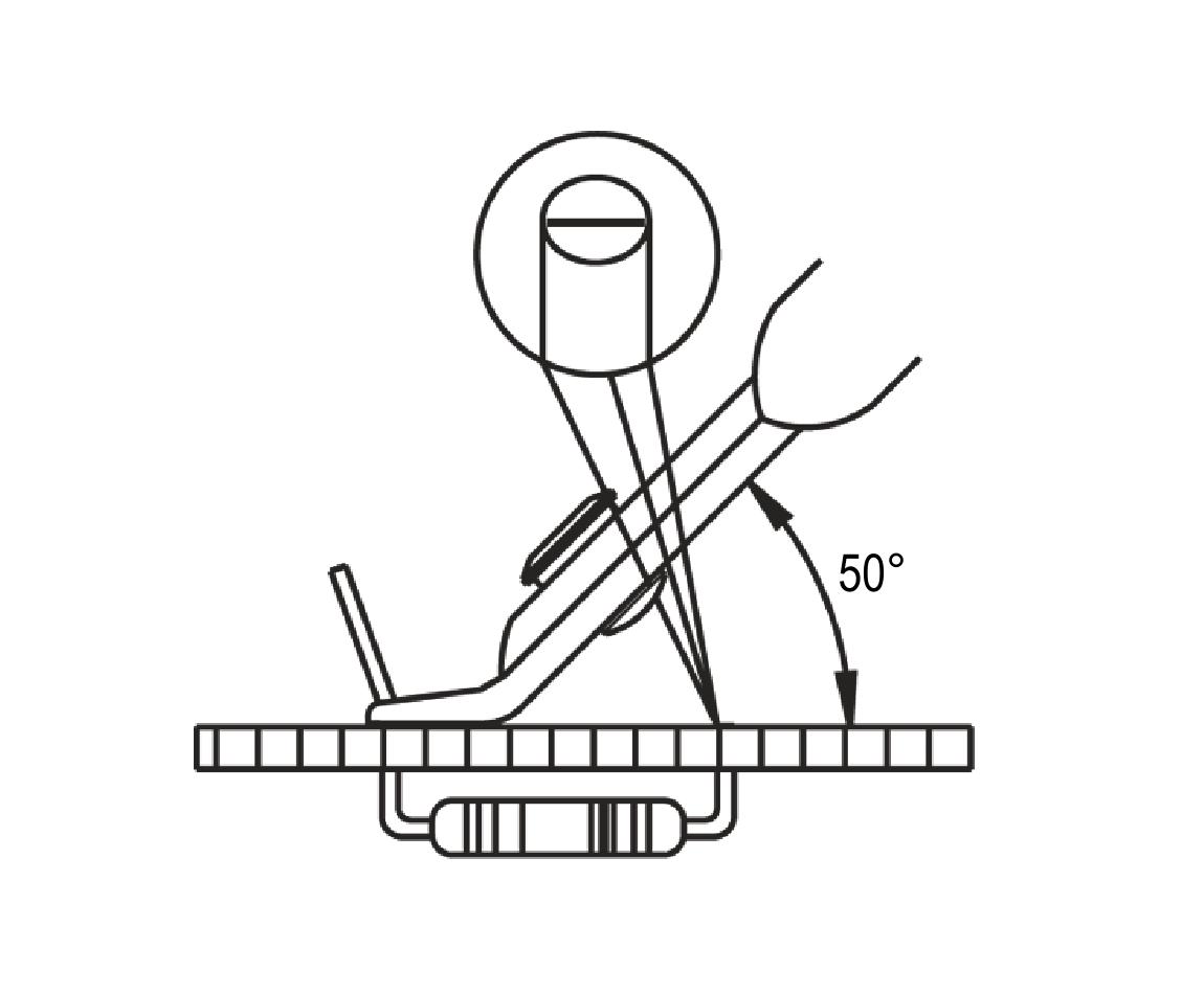 The PC2550E is an angled flush cutter. Its medium size (2,5mm thick) allow the cutting of bigger electronic components than in the micro line. In addition, its 50� angled head provides excellent visibility when used in either vertical or horizontal position. The cutters are equipped with an ESD and ergonomic handle which allows an excellent grip, suitable to environments and to components susceptible to electrostatic discharges.